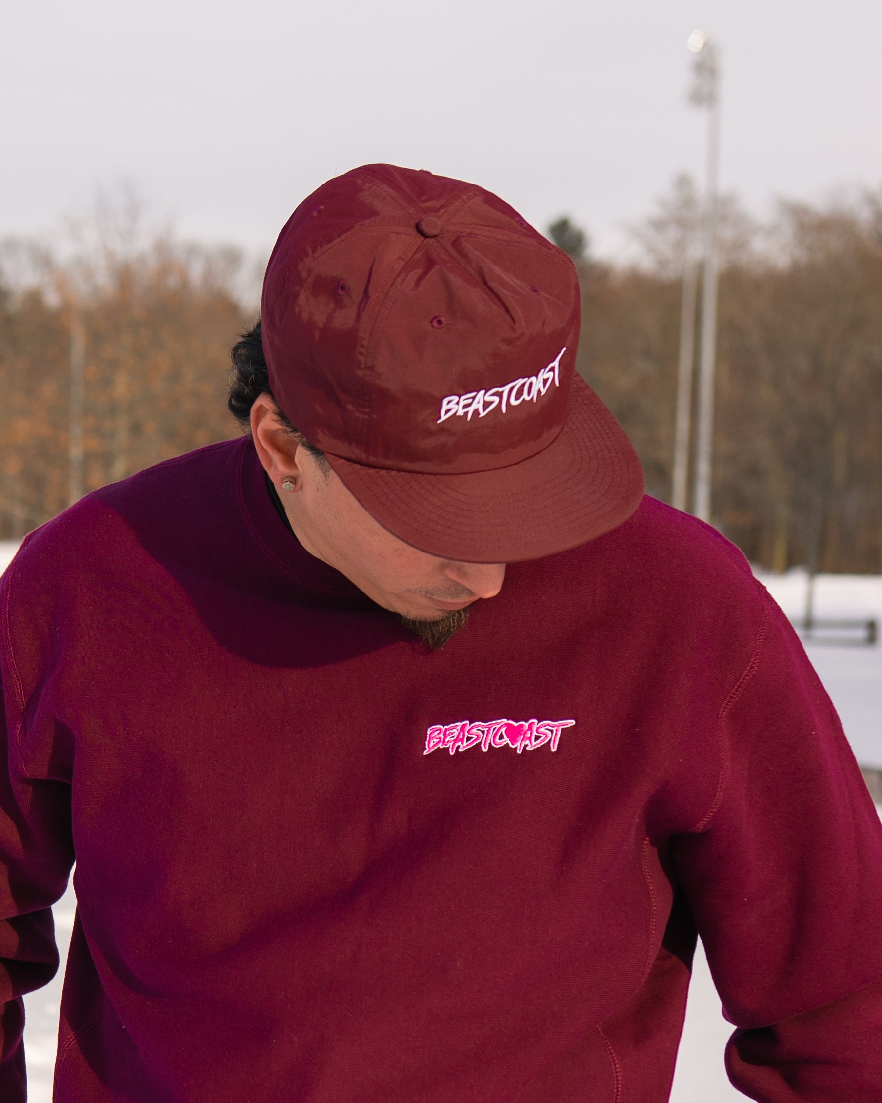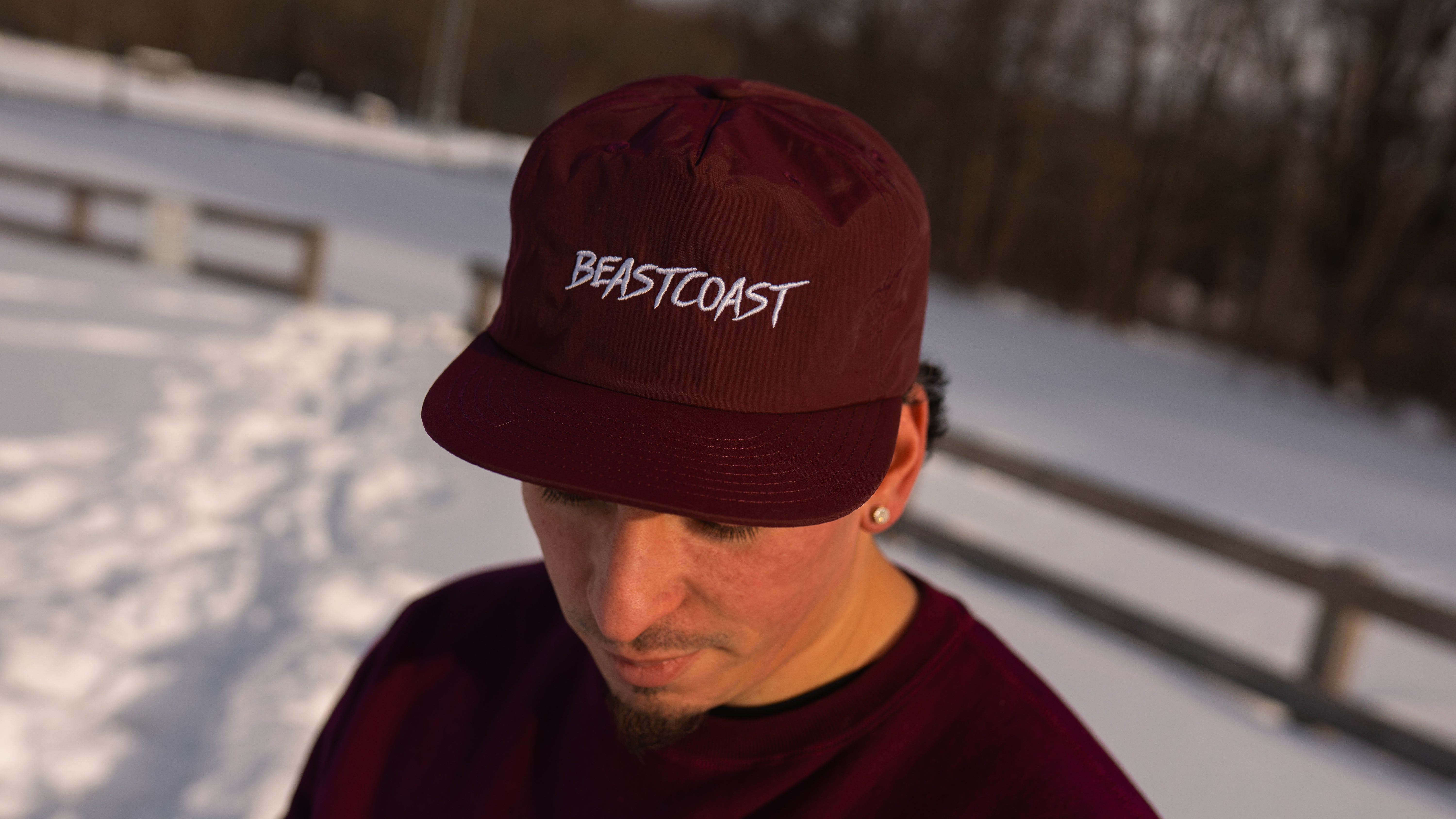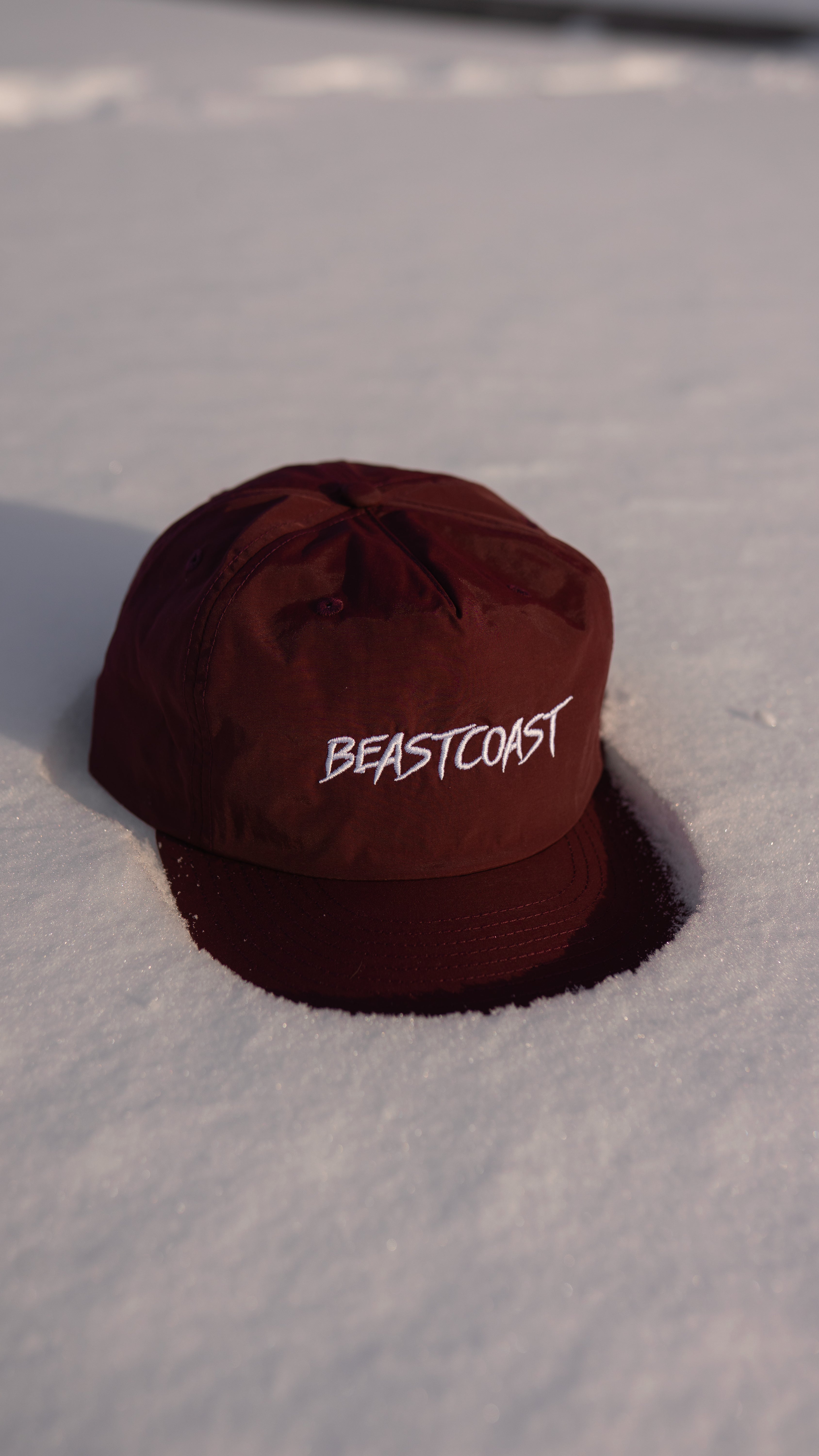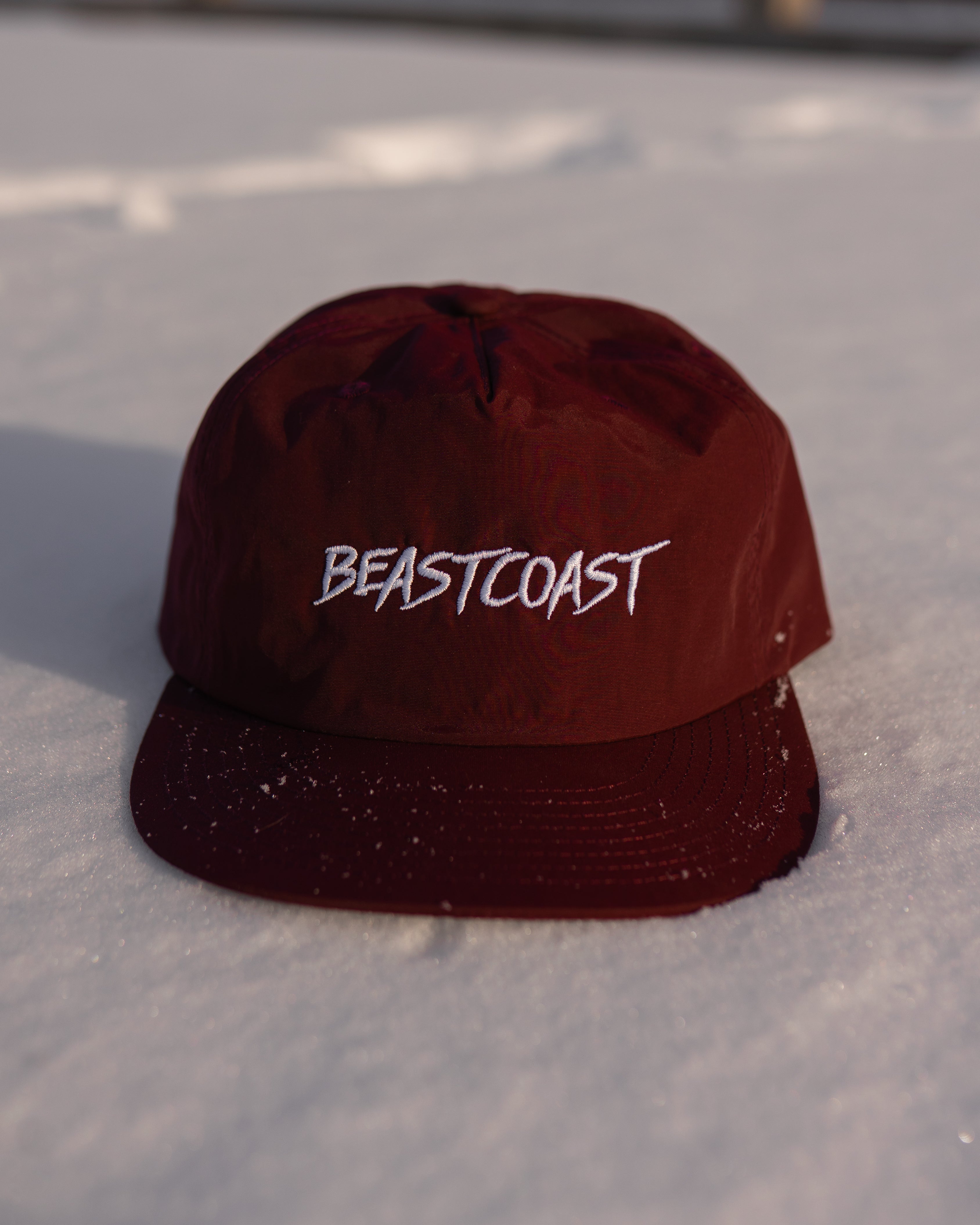 Nylon snapback with mesh sweat tab insert. BeastCoast embroidery. This snapback is super comfortable and light with a strong build. BeastCoast is forever.